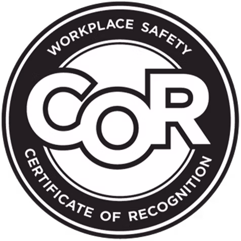 COR certification confirms our safety program meets recognized standards for workplace safety and continuous improvement.
